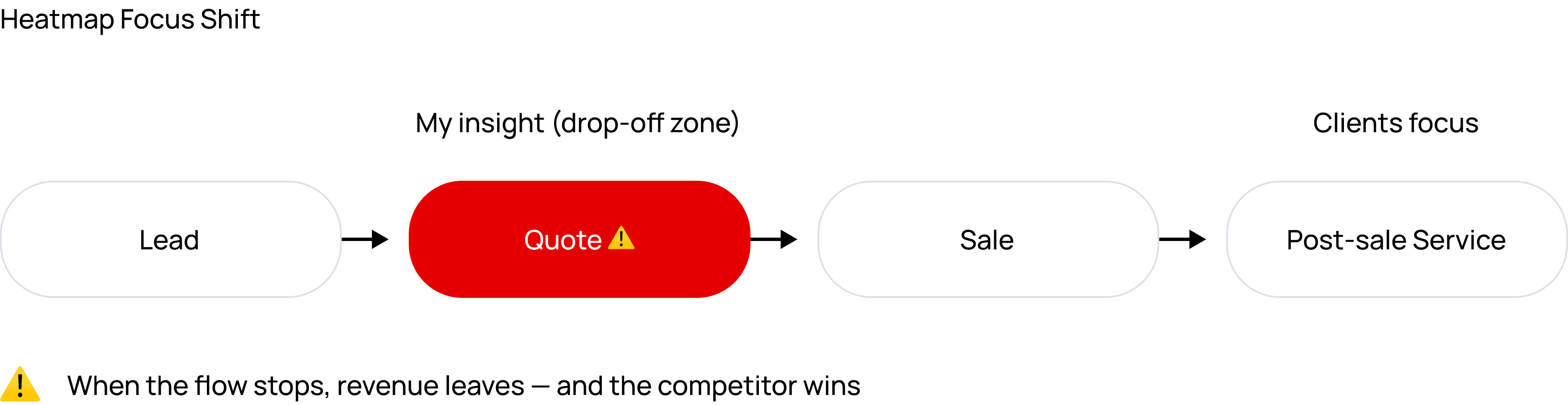 I defined the information architecture, core Quote → Sale → Client flows, designed hi-fi prototypes with in-flow editing and fast quoting, and established the initial Design System that enabled the platform to scale.